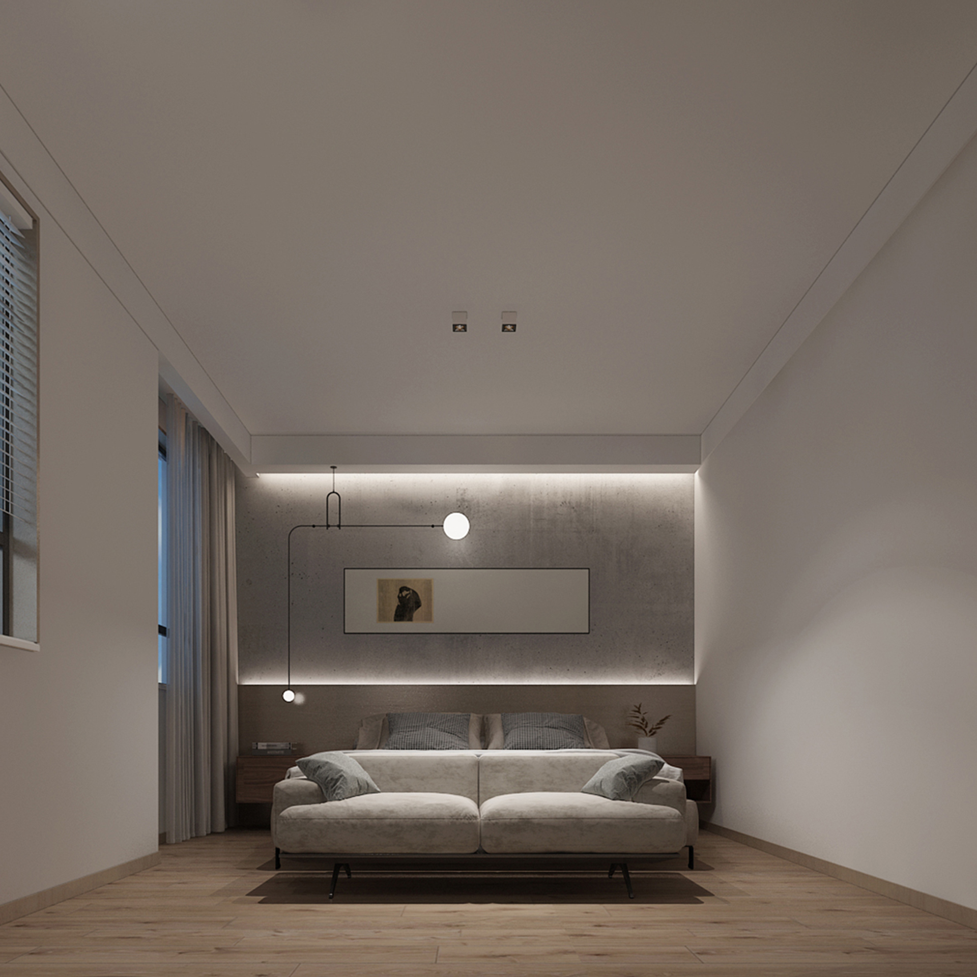 整栋别墅在不同的楼层上也有各自特别的观感体验。二楼的日暮里房间是根据全屋的面积和户型,为了更合理的利用空间,设计出的一个日式感十足的榻榻米房间,榻榻米制作材料采用了环保实木多层板,搭配上一些老旧门板,营造出了室内的一种温润美。